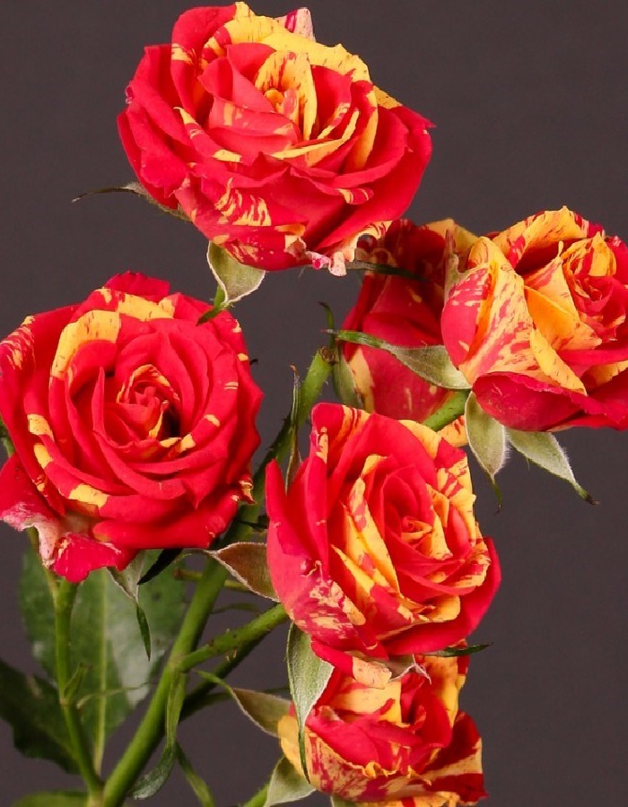 ОписаниеМноголетник оригинальный в окрасе цветения. В нем смешаны два цвета: красный и желтый. За счет пестрой окраски роза смотрится эффектно и нарядно. Кусты зацветают с наступлением мая и не перестают радовать до первых заморозков. Файер флеш обладает компактными размерами: шириной около полуметра и высотой от 50 до 70 см. Крепкие побеги растения покрыты мелкими, плотными, темно-зелеными, блестящими листочками. Цветки, появляющиеся на кустарнике, небольшие: 5−6 см в обхвате. Они образуются в кистевидных соцветиях по 5−10 штук. Для бутонов этой культуры характерна классическая форма.Возраст саженца1 год