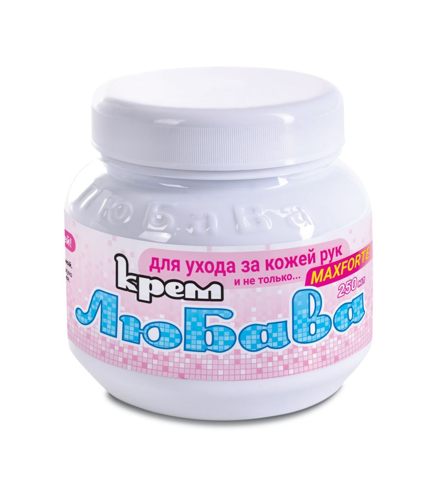 Крем «Любава MAXFORTE» – Питает и увлажняет кожу, омолаживает, разглаживает, устраняет сухость и шелушение, делает кожу бархатистой и нежной. В состав входят 5 натуральных масел: масло ши, оливковое, подсолнечное, кокосовое, виноградное. 4 натуральных экстракта: ромашки, конского каштана, свеклы, календулы.