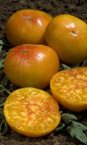 Небывало урожайный, среднеспелый сорт для открытого и закрытого грунта. Растения высокорослые (1,5-2 м). Плоды ярко-жёлтого цвета, плоскоокруглые, очень крупные массой 250-300 г, мясистые, очень сладкие, устойчивы к растрескиванию, хорошо переносят транспортировку.