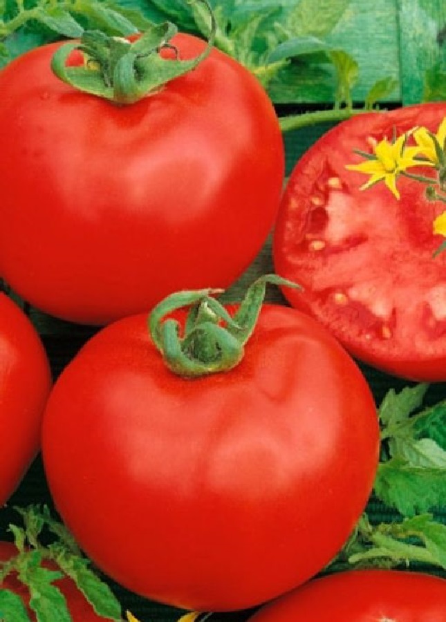 Популярный раннеспелый, высокоурожайный, крупноплодный гибрид для открытого и защищенного грунта. Куст мощный, высотой 170-180 см. Кисть простая, с 6-8 плодами, на растении формируется 10-11 кистей. Плоды крупные, округлые, гладкие, плотные, интенсивно красного цвета, с сочной мякотью, массой 250-300 г. Гибрид обладает отличными вкусовыми и товарными качествами. Рекомендуется для употребления в свежем виде, переработки и консервирования.