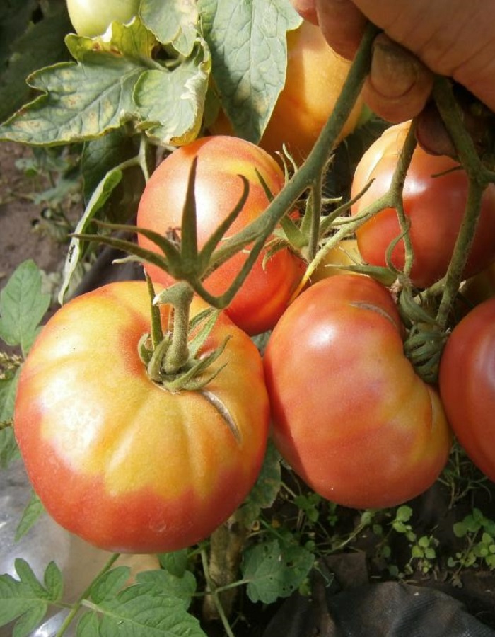 Среднеспелый сорт для теплиц и парников. Плоды розовые, плоскоокруглые, ребристые, массой 400-500 г, с крахмалистой мякотью, мясистые, сочные, очень ароматные, малосемянные.Ценность сорта: стабильно высокая урожайность, исключительные вкусовые и товарные качества, высокая продуктивность, крупноплодность и устойчивость к болезням. Рекомендуется для приготовления свежих салатов, кулинарной переработки, очень вкусного сока и других томатопродуктов.