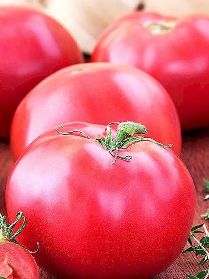 Великолепный высокорослый сорт для закрытого грунта. Плоды сердцевидной формы, с гладкой, блестящей поверхностью, ярко-малинового цвета, в первой кисти достигают веса 700-800 г, в последующих – 300-400 г. Они обладают сладкой, сахаристой мякотью. Семян в этом томате очень мало. Использование универсальное.