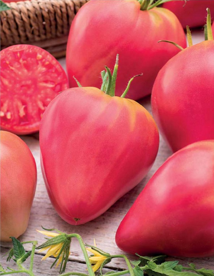 Среднеспелый (100-115 дней) сорт салатного назначения для парников, теплиц и пленочных укрытий. Растение индетерминантное, высотой до 1,8 м. В кисти – 3-4 крупных плода. Плоды сердцевидные, слегка ребристые, малиновые, массой 300-600 г, мясистые, сочные, отличного вкуса. Урожайность 7-9 кг/м2.