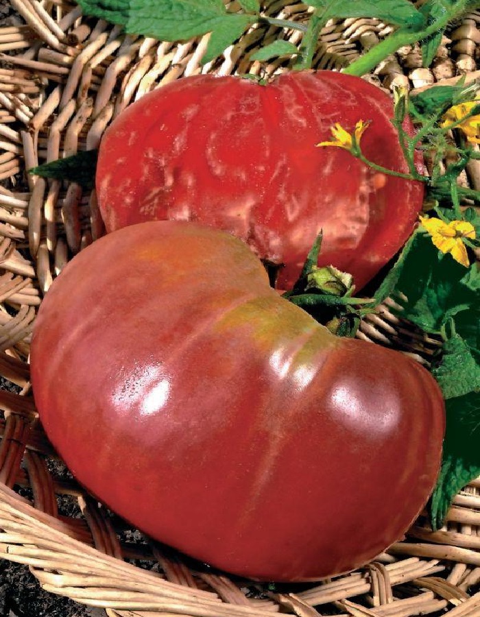 Сорт среднеспелый, светолюбивый, хорошо плодоносит в открытом грунте, не любит теплиц. Растение среднерослое, высотой до 1,5 м. Плоды гладкие, округло-плоские, красно-малинового цвета, плотные, с сахаристой мякотью и малым количеством семян, устойчивые к растрескиванию. Первый урожай из плодов массой 0,5-1 кг собирают до 1 августа. Второй урожай из 20-30 томатов среднего размера-до конца сентября. Урожайность до 10 кг/м2.