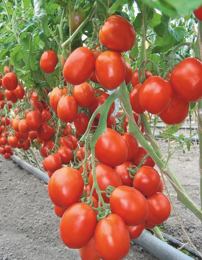 Среднеранний (95-113 дней) гибрид для выращивания в открытом грунте и под пленочными укрытиями. Растения детерминантные, высотой 70-100 см, не пасынкуются. Плоды сливовидные, гладкие, выровненные, с плотной кожицей, красные, массой до 10 0г, располагаются в кистях по 7-9 штук.