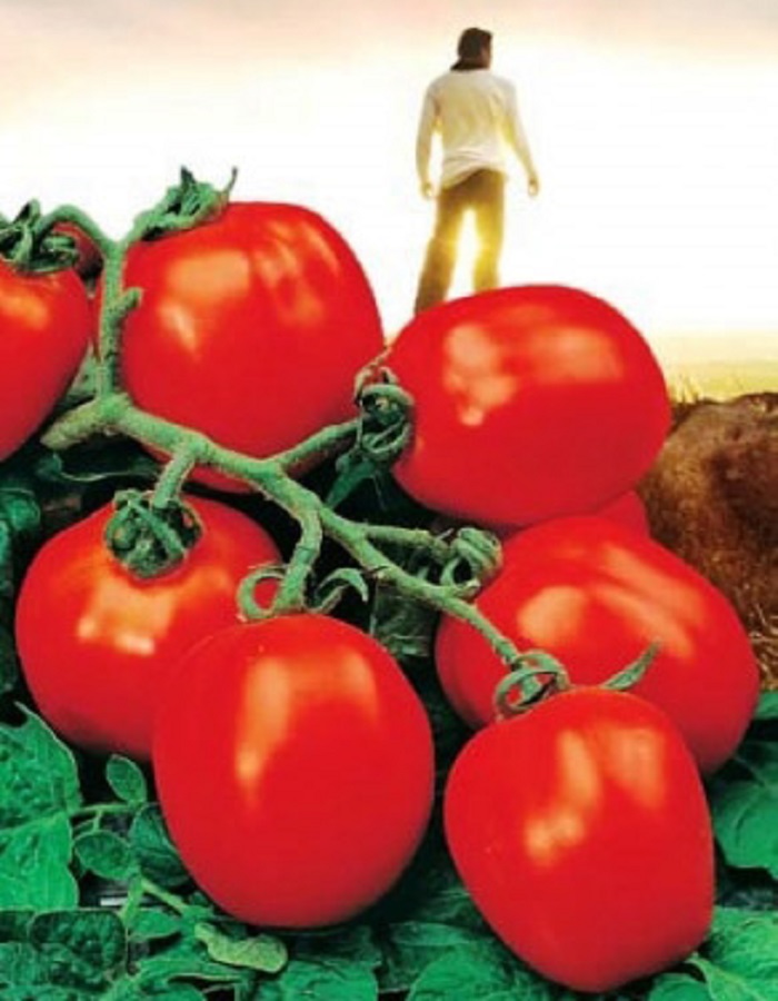 Необычайно урожайный, среднеспелый сорт для открытого и закрытого грунта. Растение штамбовое, высотой 100-130 см. Плоды ярко-красные, глянцевые, сливовидной формы, массой 80-120 г, плотные, без сочленения в плодоножке, долго хранятся на растениях и после уборки.