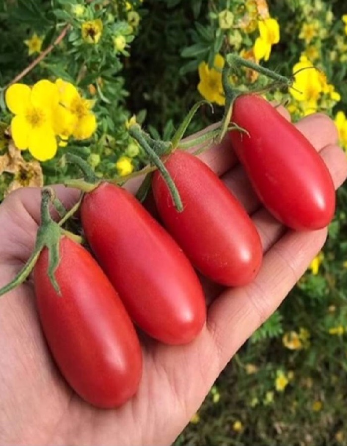 Среднеспелый (117-130 дней) сорт для открытого грунта. Растения детерминантные, не требуют подвязки и пасынкования. Плоды удлиненно-сливовидные, гладкие, красные, располагаются в кистях по 4-6 штук. Используют в свежем виде и для цельноплодного консервирования.