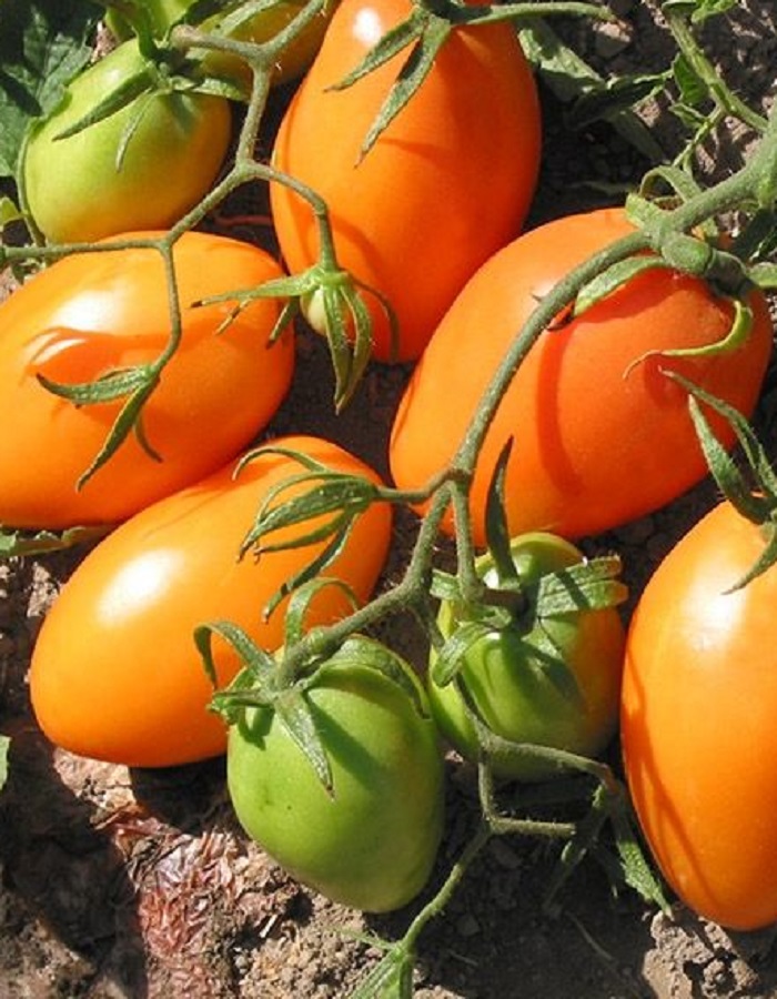 Необычайно урожайный, среднеспелый сорт для открытого грунта. Растения мощные, высотой 60-70 см. Плоды овально-сливовидной формы, красивой, ярко-оранжевой окраски, массой 80-100 г, плотные, мясистые, сочные, сладкие как мед.
