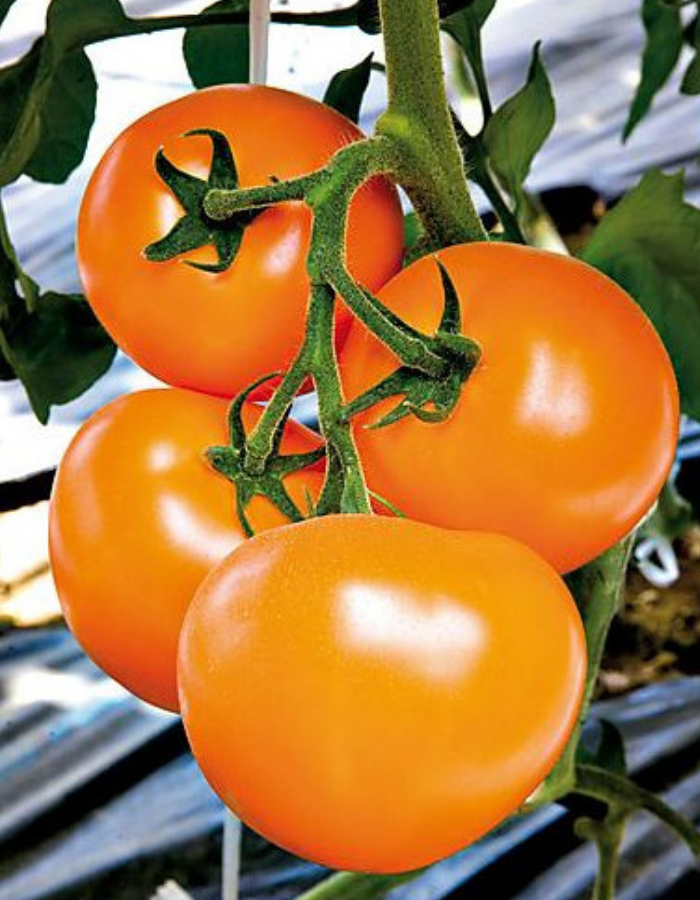 Ранний гибрид, формирует компактную кисть с 3-5 плодами насыщенного желто-оранжевого цвета, очень богатыми ликопином, с превосходным сбалансированным вкусом и приятным ароматом, характерным для томатов типа Момотаро. Благодаря мощной корневой системе, плоды хорошо завязываются, даже при низких температурах. Устойчив к вершинной гнили и растрескиванию плодов. Для улучшения транспортабельности рекомендуется сбор продукции в стадии бурой спелости.Растение индетерминантного типа, в высоту достигает 1,8-2 м. Плоды данного сорта имеют плоскоокруглую форму и насыщенно жёлто-оранжевый цвет, вес которых варьируется от 180 до 250 граммов.