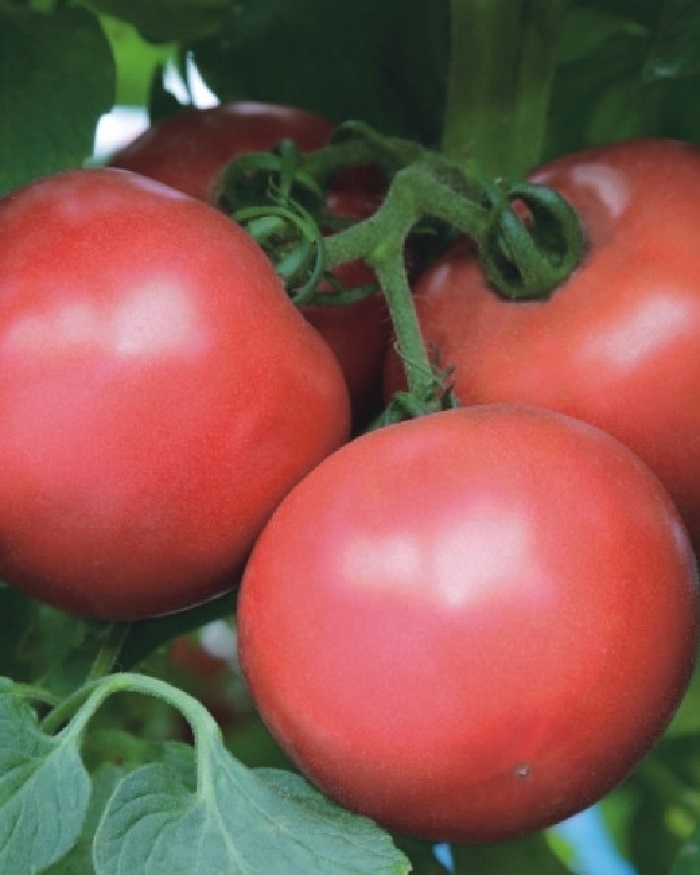 Раннеспелый интердетерминантный гибрид (60-65 дней от высадки рассады). Растение сбалансированное, полуоткрытого типа.Плоды крупные, розового цвета, с приятным сладким вкусом и лёгкой кислинкой,массой 180- 250 гр.Благодаря толстой стенке, гибрид прекрасно транспортируется.Устойчив ко многим вирусным и грибковым заболеваниям.Выращивается в открытом и закрытом грунте.Рекомендуется для потребления в свежем виде и переработки.