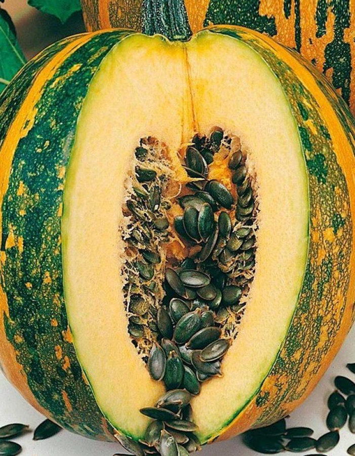 Уникальный среднеранний сорт. Плод округлоцилиндрический, слегка ребристый. Масса плода 5-9 кг. Зрелый плод желтый с широкими темно-зелеными, пятнистыми полосами. Кора тонкая, твердая. Мякоть светло-желтая, слабоволокнистая. Семена без твердой оболочки.