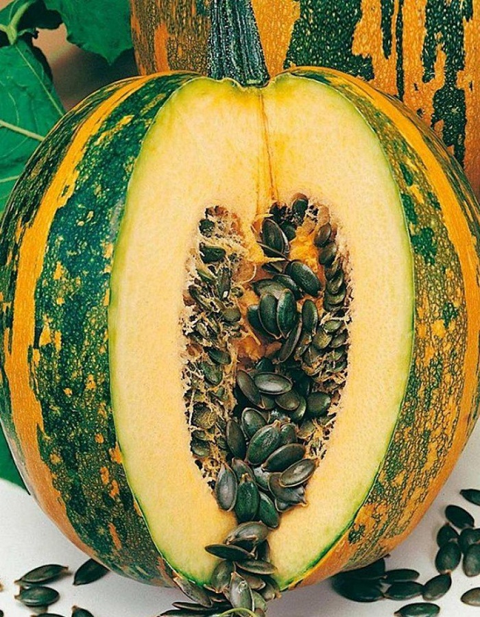 Уникальный среднеранний сорт. Плод округлоцилиндрический, слегка ребристый. Зрелый плод желтый с широкими темно-зелеными, пятнистыми полосами. Кора тонкая, твердая. Мякоть светло-желтая, слабоволокнистая. Семена без твердой оболочки. Предназначен для употребления в сыром виде, в кулинарии и получения семенной продукции. Отличительные особенности данного сорта в том, что именно этот сорт тыквы использовали в СССР для получения «Абрикосового сока» в знаменитых трёхлитровых банках. Для этого варили курагу, делали из неё пюре и смешивали с соком этой тыквы! За счёт цвета мякоти и большого содержания сахаров получается оранжевый, необыкновенно сладкий, а главное полезный сок!