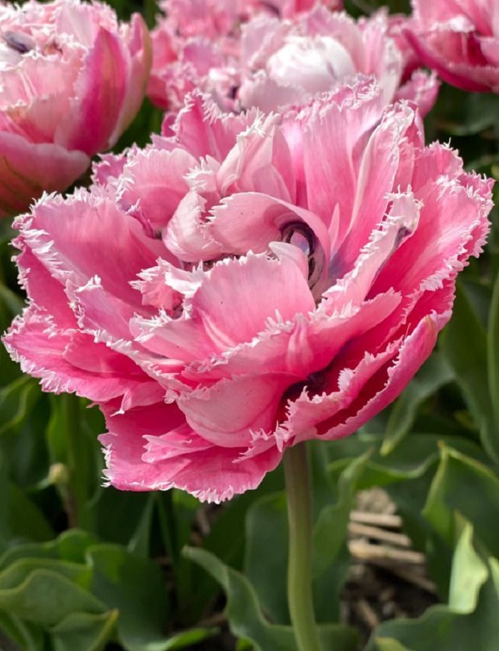 Тюльпан Sugar Crystal (бахромчатый) – это эффектный сорт бахромчатых тюльпанов, известный своими нежными пастельно-розовыми лепестками с бахромой по краям. Высота растения достигает 45 см. Нежно-розовая окраска с легким перламутровым оттенком, напоминающим сахарные кристаллы. Цветок- классический бокал с изящной бахромой по краям лепестков. Срок цветения среднепоздний (конец апреля – май).