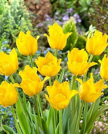 Тюльпан бахромчатый Криспи Мэри — многолетнее луковичное растение высотой 40 см с необычными завораживающими цветками диаметром 8–10 см. Лепестки лимонно-желтые, по краю игольчато-бахромчатые, образуют шикарный восхитительный бокал. Тюльпан Криспи Мэри широко используют как для озеленения и украшения клумб, так и для букетов.