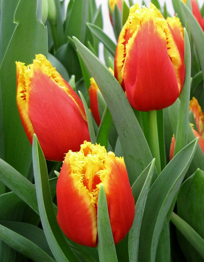 Тюльпан бахромчатый Криспи Артэйр — многолетнее луковичное растение высотой 45 см с необычными завораживающими цветками диаметром 8–10 см. Лепестки красные с желтой окантовкой, по краю игольчато-бахромчатые, образуют шикарный восхитительный бокал. Тюльпан Криспи Артэйр широко используют как для озеленения и украшения клумб, так и для букетов.