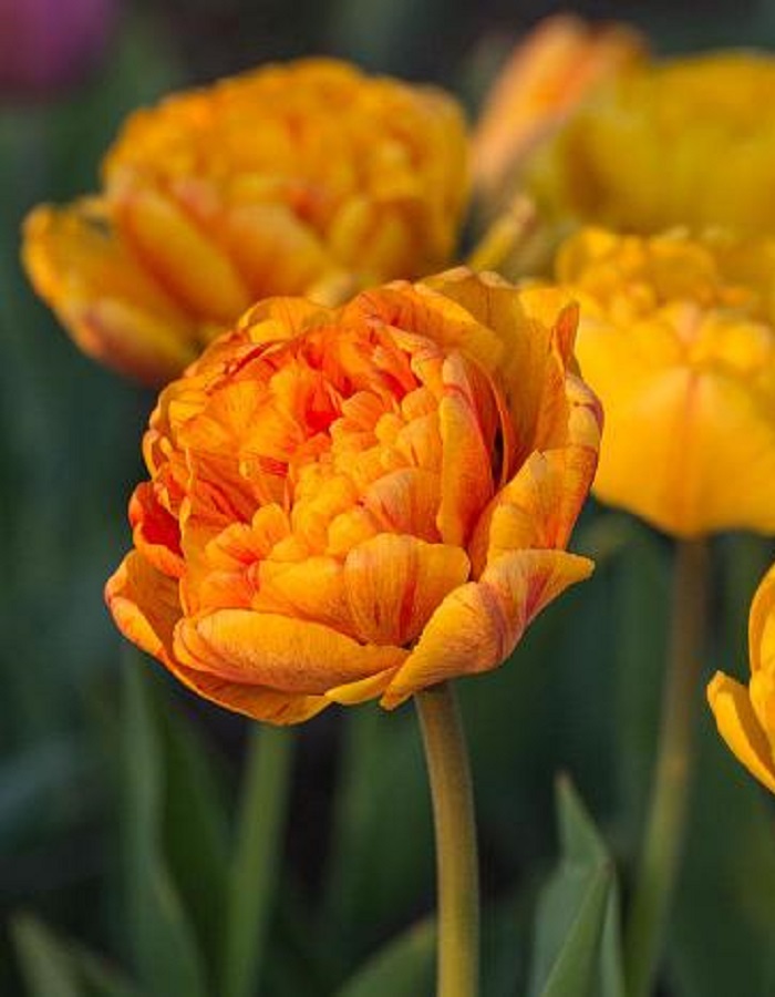 Тюльпан Дабл Бьюти оф Апельдорн (махровый поздний) — многолетнее луковичное растение высотой 50–60 см с необычными завораживающими цветками диаметром 12–15 см. Множество желто-оранжевых лепестков образуют шикарный восхитительный бокал. Тюльпан Дабл Бьюти оф Апельдорн широко используют как для озеленения и украшения клумб, так и для букетов.