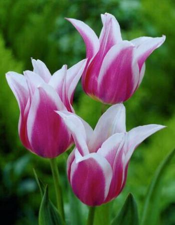 Тюльпан лилиецветный Клаудиа — многолетнее луковичное растение высотой 50–60 см с необычными завораживающими цветками диаметром 8 см. Лепестки лиловые с белой каймой, остроконечные, отогнутые наружу, образуют шикарный бокал. При полном роспуске восхитительный и экстравагантный цветок напоминают звезду. Тюльпан Клаудиа широко используют как для озеленения и украшения клумб, так и для букетов.