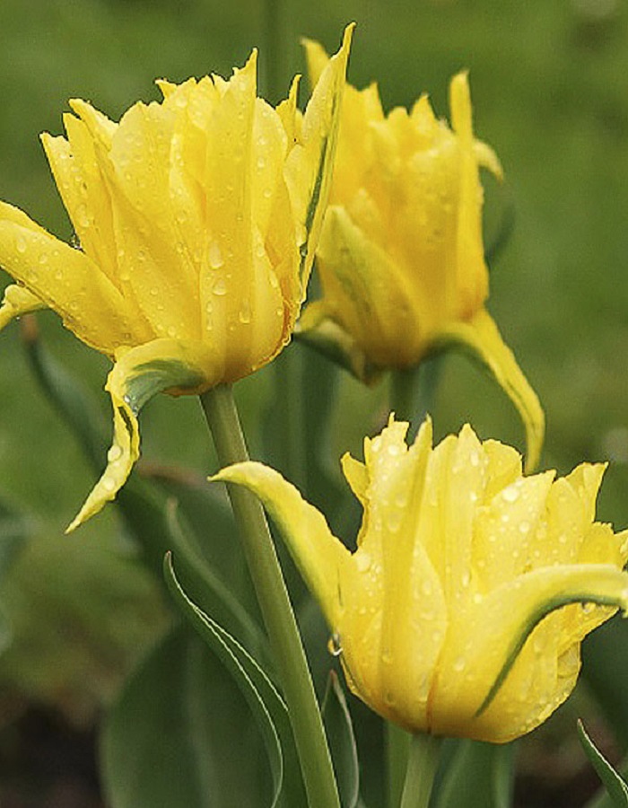 Monte Spider лилиецветный . "Двойной эффект".  Лилиецветный. Махровый. Высота 50 см.  Желтый, с раскидистыми ,узкими лепестками. Высота бокала 7-10 см. Лилиецветные тюльпаны - тюльпаны этого класса легко узнаваемы, так как своей формой напоминают цветок лилии — изящные бокалы с отгибающимися наружу и заостренными на концах лепестками. Лилиецветные тюльпаны довольно высокорослы (до 50-60 см в высоту), имеют крепкие цветоносы и цветы разнообразной окраски. Цветут во второй половине мая и, несмотря на свою немногочисленность, широко используются для озеленения садов и парков, для срезки, а некоторые сорта пригодны для выгонки. Для успешного выращивания тюльпанов необходимо соблюдать основные правила агротехники.