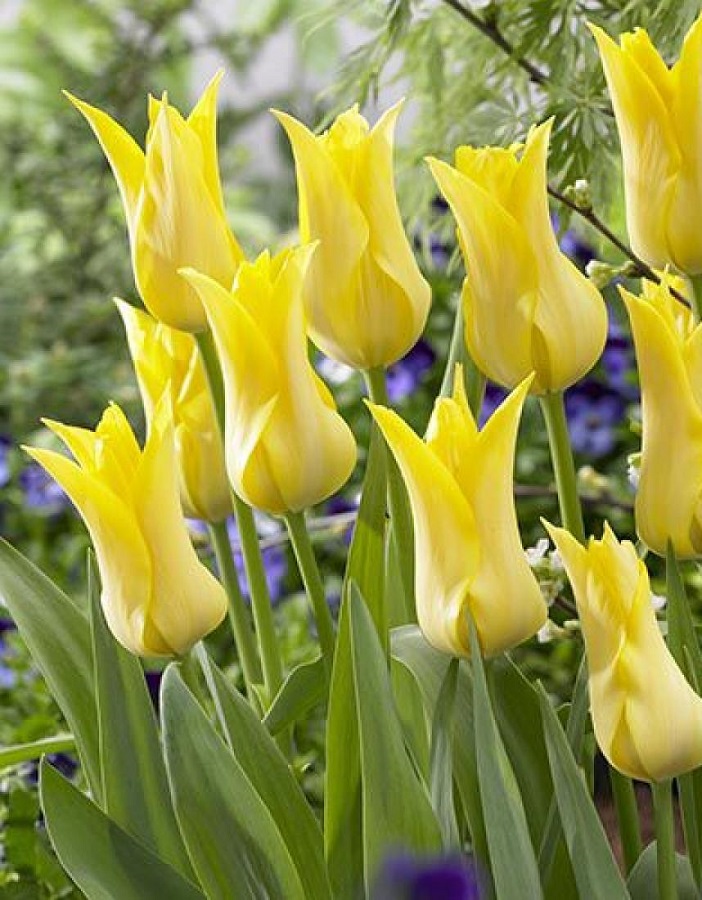 Тюльпан лилиецветный Баллада Голд — многолетнее луковичное растение высотой 50–60 см с необычными завораживающими цветками диаметром 8–10 см. Лепестки ярко желтые, остроконечные, отогнутые наружу, образуют шикарный бокал. При полном роспуске восхитительный и экстравагантный цветок напоминают звезду. Тюльпан Баллада Голд широко используют как для озеленения и украшения клумб, так и для букетов.