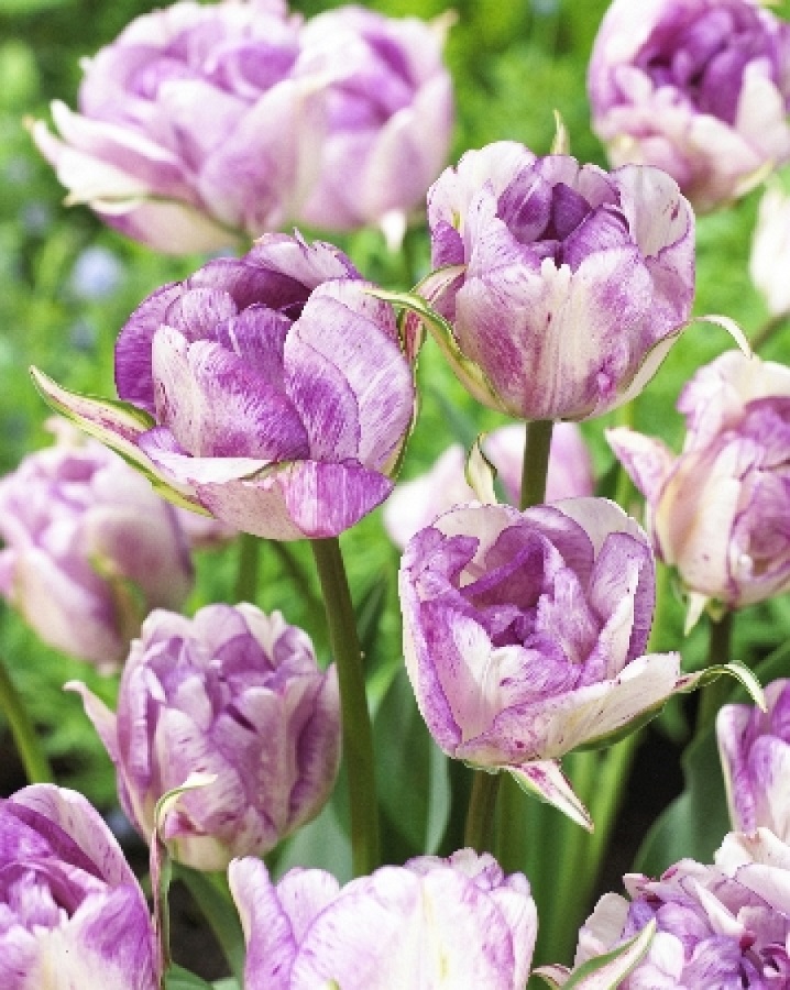 Тюльпан Дабл Ширли (махровый поздний) — многолетнее луковичное растение высотой 45 см с необычными завораживающими цветками диаметром 10 см. Множество бело-малиновых лепестков образуют шикарный восхитительный бокал. Тюльпан Дабл Ширли широко используют как для озеленения и украшения клумб, так и для букетов.