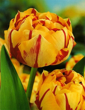 Тюльпан Голден Ницца (махровый поздний) — многолетнее луковичное растение высотой 40–50 см с необычными завораживающими цветками диаметром 10 см. Множество лимонно-желтых лепестков с алыми язычками образуют шикарный восхитительный бокал. Тюльпан Голден Ницца широко используют как для озеленения и украшения клумб, так и для букетов.