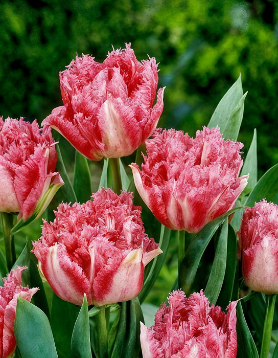 Тюльпан бахромчатый Кул Кристал (махровый) — многолетнее луковичное растение высотой 40–45 см с необычными завораживающими цветками диаметром 12–15 см. Множество бело-розовых лепестков с красивой изящной бахромой образуют шикарный восхитительный бокал. Тюльпан Кул Кристал широко используют как для озеленения и украшения клумб, так и для букетов.