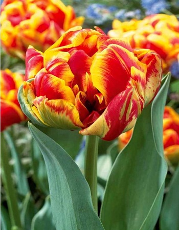Тюльпан Силеста (махровый ранний) — многолетнее луковичное растение высотой 40 см с необычными завораживающими цветками диаметром 10 см. Множество ярких желто-красных лепестков образуют шикарный восхитительный бокал. Тюльпан Силеста широко используют как для озеленения и украшения клумб, так и для букетов.