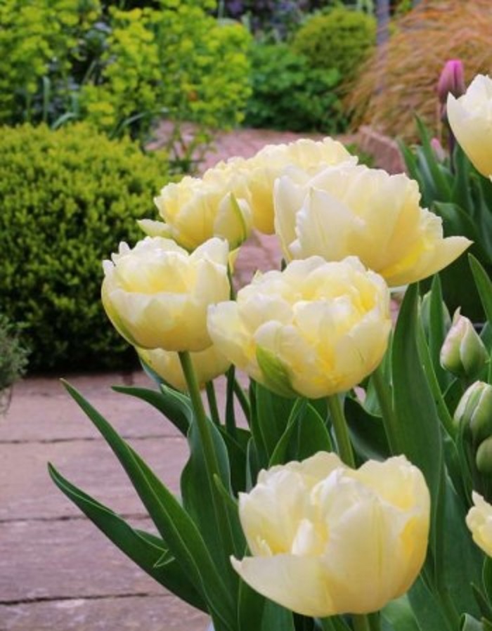 Тюльпан Верона (махровый ранний) — многолетнее луковичное растение высотой 40–45 см с необычными завораживающими цветками диаметром 10–12 см. Множество светло-желтых лепестков образуют шикарный восхитительный бокал. Тюльпан Верона широко используют как для озеленения и украшения клумб, так и для букетов.