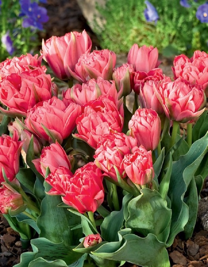 Тюльпан Торонто Дабл (многоцветковый) — многолетнее луковичное растение высотой 35 см с необычными завораживающими цветками диаметром 10 см. На одном стебле развивается от 3 до 6 цветоносов. Розово-красные махровые цветки образуют шикарный восхитительный букет. Тюльпан Торонто Дабл широко используют как для озеленения и украшения клумб, так и для букетов.