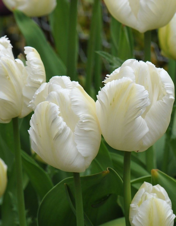 Тюльпан попугайный Уайт Пэррот — многолетнее луковичное растение высотой 45–50 см с необычными цветками диаметром 8–10 см. Лепестки экзотической формы, похожие на перья птиц, с волнистыми краями. Цветы завораживающей белоснежной окраски восхитительны и экстравагантны. Тюльпан Уайт Пэррот широко используют как для озеленения и украшения клумб, так и для букетов.