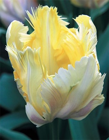 Тюльпан попугайный Крим Лизард — многолетнее луковичное растение высотой 50 см с необычными цветками диаметром 10 см. Лепестки экзотической формы, похожие на перья птиц, с волнистыми изрезанными краями. Цветы завораживающей желто-кремовой окраски восхитительны и экстравагантны. Тюльпан Крим Лизард широко используют как для озеленения и украшения клумб, так и для букетов.