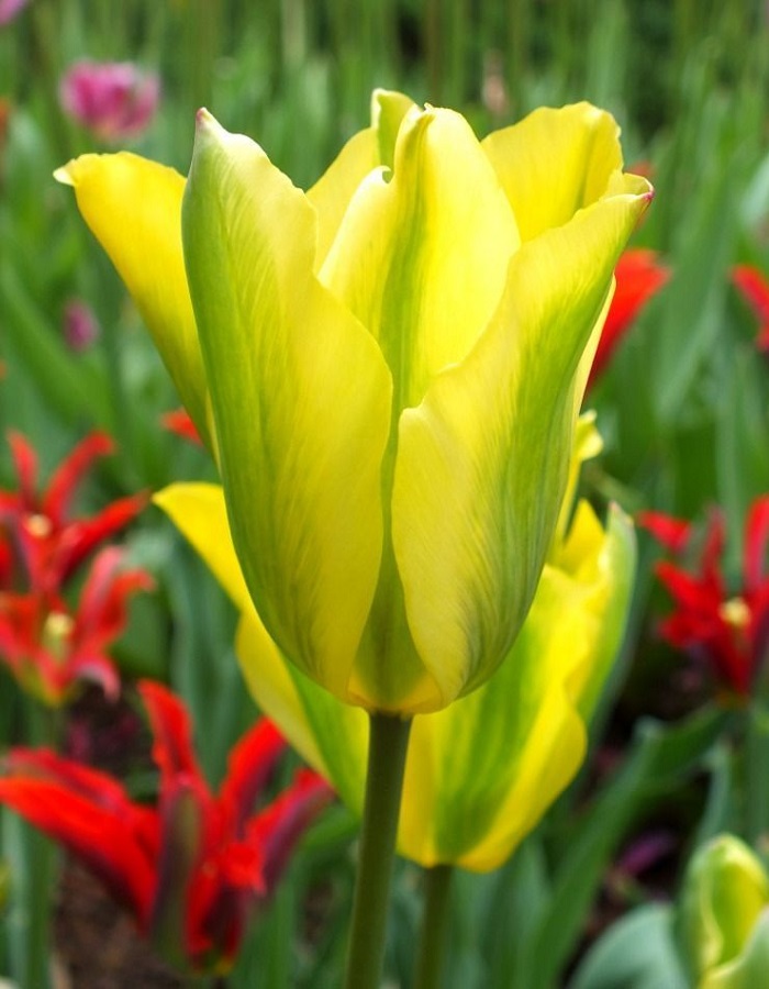 Тюльпан Формоза (простой поздний) — многолетнее луковичное растение высотой 40 см с необычными завораживающими цветками диаметром 10-12 см. Жёлто-зелёные лепестки образуют шикарный восхитительный бокал. Тюльпан Формоза широко используют как для озеленения и украшения клумб, так и для букетов.