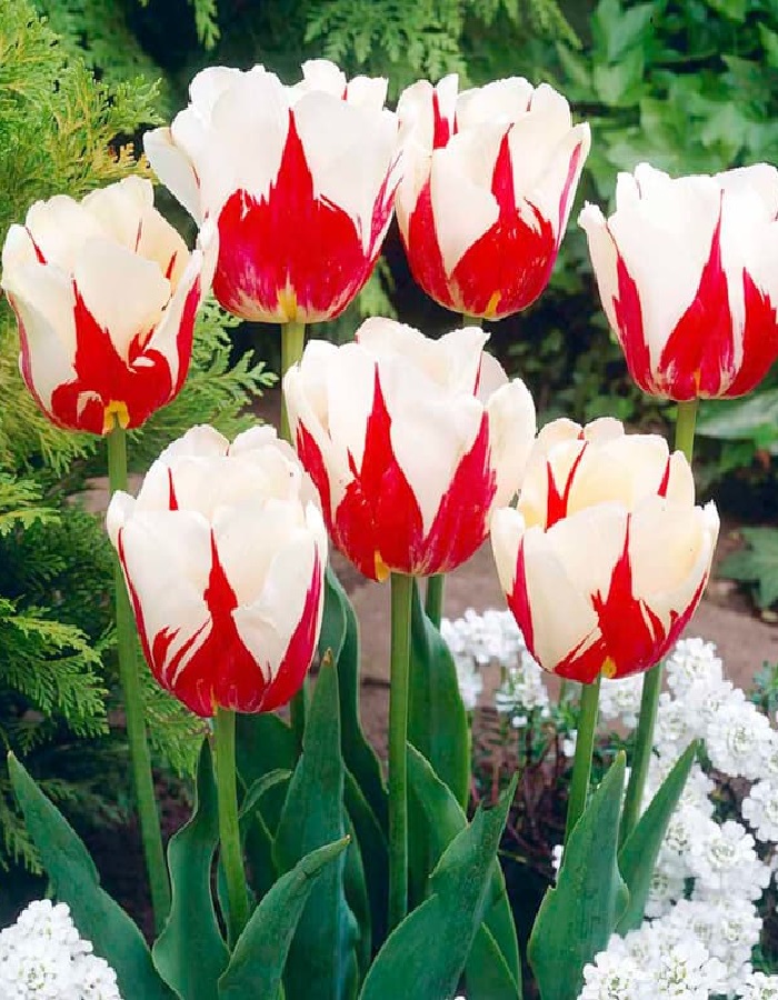 Тюльпан Волд Экспрешн (простой поздний) — многолетнее луковичное растение высотой 50–60 см с необычными завораживающими цветками диаметром 10 см. Лепестки цвета слоновой кости с красными штрихами образуют шикарный восхитительный бокал. Тюльпан Волд Экспрешн широко используют как для озеленения и украшения клумб, так и для букетов.