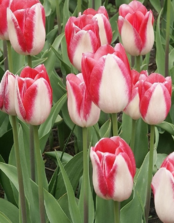 Тюльпан Рексона (простой ранний) — многолетнее луковичное растение высотой 40–45 см с необычными завораживающими цветками диаметром 8–10 см. Белоснежные лепестки с красными краями образуют шикарный восхитительный бокал. Тюльпан Рексона широко используют как для озеленения и украшения клумб, так и для букетов.