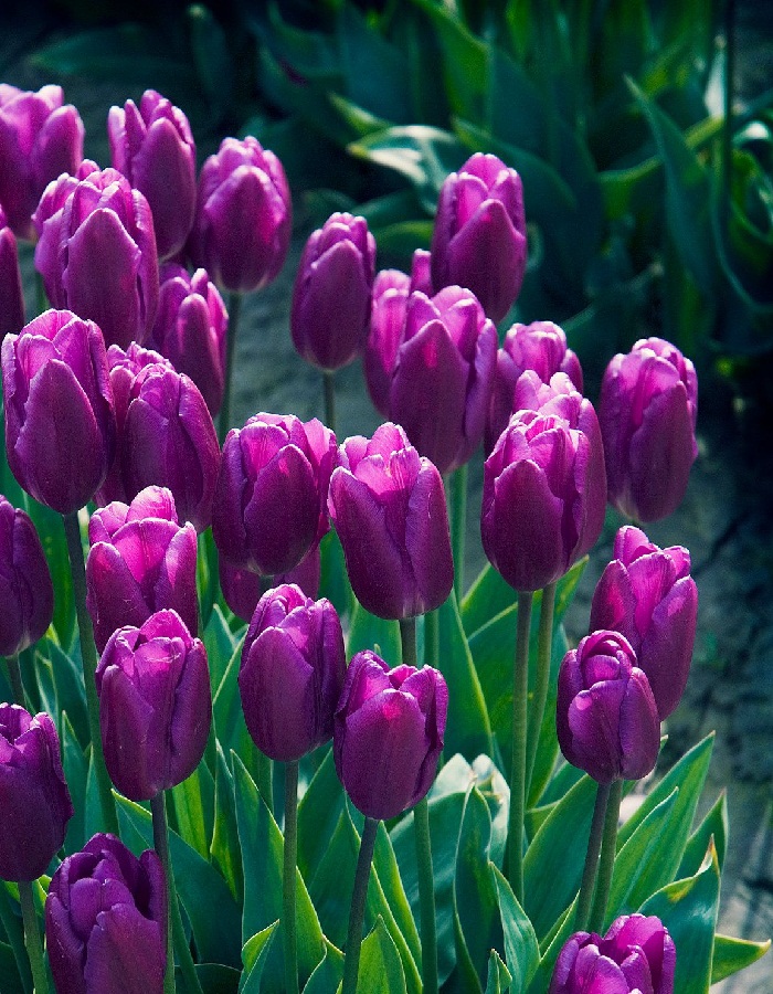 Тюльпан Пурпл Рейн (класс Триумф) — многолетнее луковичное растение высотой 50–60 см с необычными завораживающими цветками диаметром 10–12 см. Пурпурные лепестки образуют шикарный восхитительный бокал. Тюльпан Пурпл Рейн широко используют как для озеленения и украшения клумб, так и для букетов.