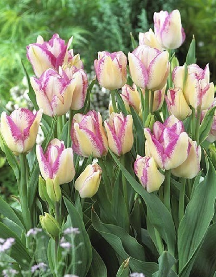 Тюльпан Дель Пьеро (класс Триумф) — многолетнее луковичное растение высотой 50 см с необычными завораживающими цветками диаметром 10–12 см. Белоснежные лепестки с темно-розовыми краями образуют шикарный восхитительный бокал. Тюльпан Дель Пьеро широко используют как для озеленения и украшения клумб, так и для букетов.