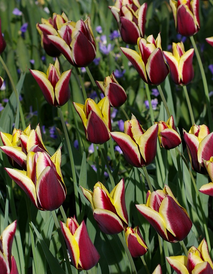 Тюльпан Гавота (класс Триумф) — многолетнее луковичное растение высотой 50–60 см с необычными завораживающими цветками диаметром 10–12 см. Лепестки вишневого оттенка с широкой ярко-желтой каймой по краям образуют шикарный восхитительный бокал. Тюльпан Гавота широко используют как для озеленения и украшения клумб и для букетов.