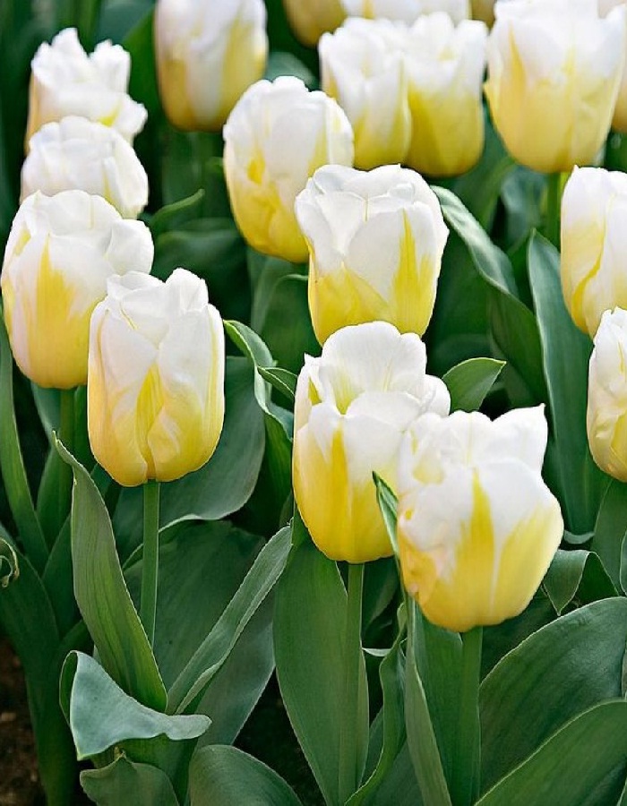 Тюльпан Калгари Флеймс (класс Триумф) — многолетнее луковичное растение высотой 45–50 см с необычными завораживающими цветками диаметром 10 см. Желто-белые лепестки образуют шикарный восхитительный бокал. Тюльпан Претти Принцесс широко используют как для озеленения и украшения клумб, так и для букетов.