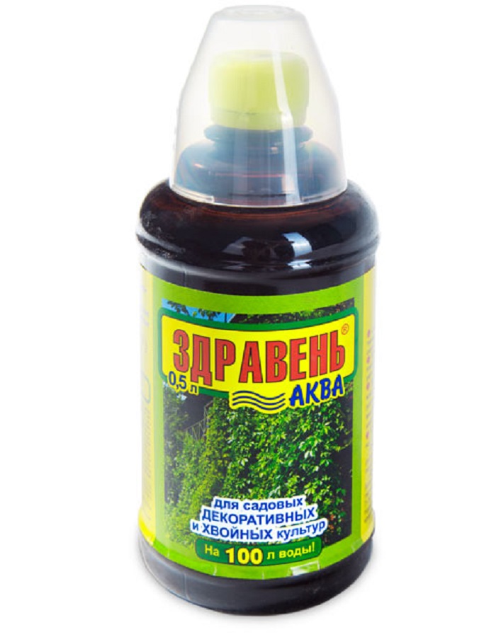 ОписаниеЗдравень АКВА — жидкое комплексное органоминеральное удобрение для корневых и внекорневых подкормок садовых декоративных и хвойных культур в личных подсобных хозяйствах.Содержит оптимальный для подкормки садовых декоративных и хвойных культур набор макро- и микроэлементов. Не содержит хлора.Гарантирует правильное, гармоничное развитие растений; повышает качество, насыщенность, густоту окраски хвои; укрепляет корневую систему.Все питательные элементы находятся в наиболее усвояемой для растений форме и правильном соотношении, ряд микроэлементов в хелатной форме. Жидкое удобрение «Здравень Аква» гарантирует быстрое поступление питательных элементов в растение и высокую отдачу. Удобно в применении, легко и точно дозируется, экономично.СоставАзот, Фосфор, Калий, Марганец, Железо, Медь, Кобальт.Срок годности4 года с даты изготовленияСпособ примененияНорма применения для корневых подкормок (путем полива) — 50 мл на 10 л воды на 2–3 м².Корневая подкормка — с мая по август через 10–15 дней.