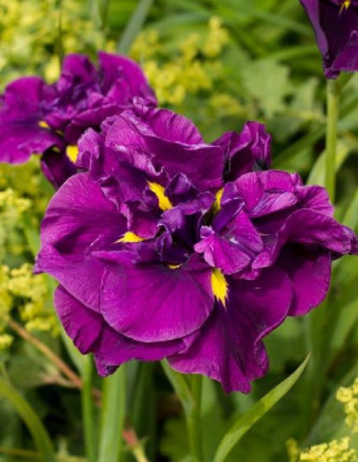 Ирис Эйлинс Дрим - махровые, насыщенные, ярко-фиолетовые цветы, по центру лепестков - желтые мазки. Цветы японского ириса очень крупные, слегка ароматные, каждый цветок держится на кусте от трёх до пяти дней (зависит от погоды, если очень жарко, цветок быстрее вянет). Листья мечевидные, к концу суженные, светло-зеленые, у основания красно-фиолетовые, с ярко-выраженной средней жилкой. В засушливое время полив обязателен. В районах с очень морозными, но бесснежными зимами не помешает окучивание на зиму торфом. Используется в цветниках пейзажного стиля, в солитерных посадках, у водоемов. Прекрасно сочетается с астильбой, хостами, бузульником. Эффектно смотрятся в групповых посадках.