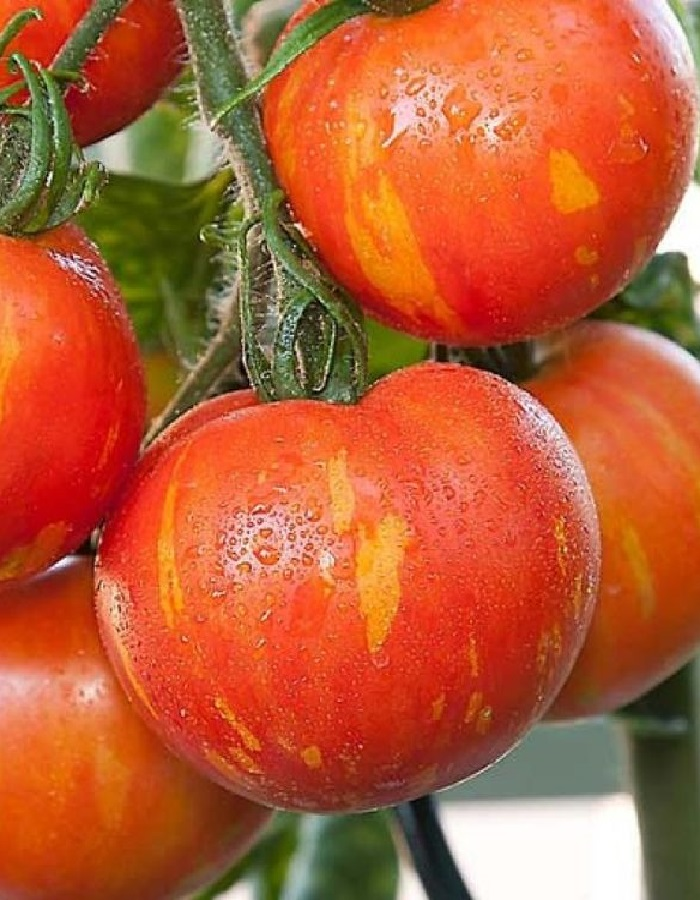 Среднеспелый (115-120 дней) сорт для выращивания в открытом и защищенном грунте. Растение индетерминантное, требует подвязки и формирования в 1-2 стебля. Плод округлой формы, слаборебристый, красный с желтыми полосами, мясистый, плотный, массой 150-200 г. Используют в свежем виде, для засолки и консервирования. Урожайность 4,0-4,5кг/кв.м.Ценность сорта: высокая урожайность, крупноплодность, отличные вкусовые качества, устойчивость к болезням.