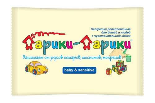 «Дарики-Дарики» — салфетки репеллентные для детей и людей с чувствительной кожей Защищает от укусов комаров, москитов и мокрецов! Упаковка: салфетки в упаковке из пленки.