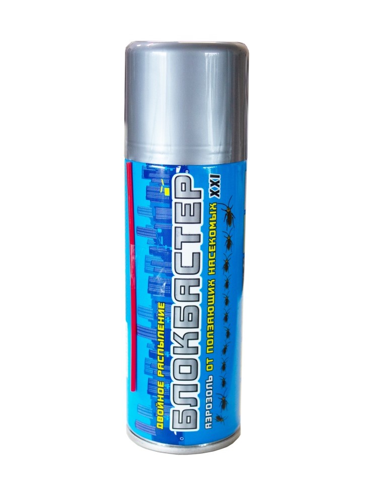 Высокой активностью против тараканов, постельных клопов, блох, муравьёв и кожеедов обладает «Блокбастер XXI: двойное распыление» - мощное средство без запаха. Препарат моментально блокирует нервную систему, вызывает паралич и гибель насекомых. Аэрозоль оснащен кэп (сар) насадкой и распылительной трубкой: два режима позволяют удобно и тщательно провести обработку помещений.