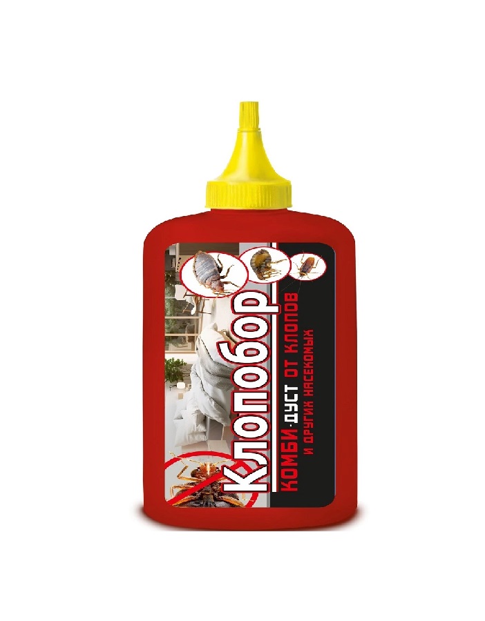 Клопобор КОМБИ-дуст от клопов и других насекомых - это инсектицидное средство для уничтожения клопов, блох, тараканов, муравьев и мух организациями, занимающимися дезинфекционной деятельностью, и населением в быту. Состав: циперметрин — 0,2 %, малатион — 0,5%, наполнители.