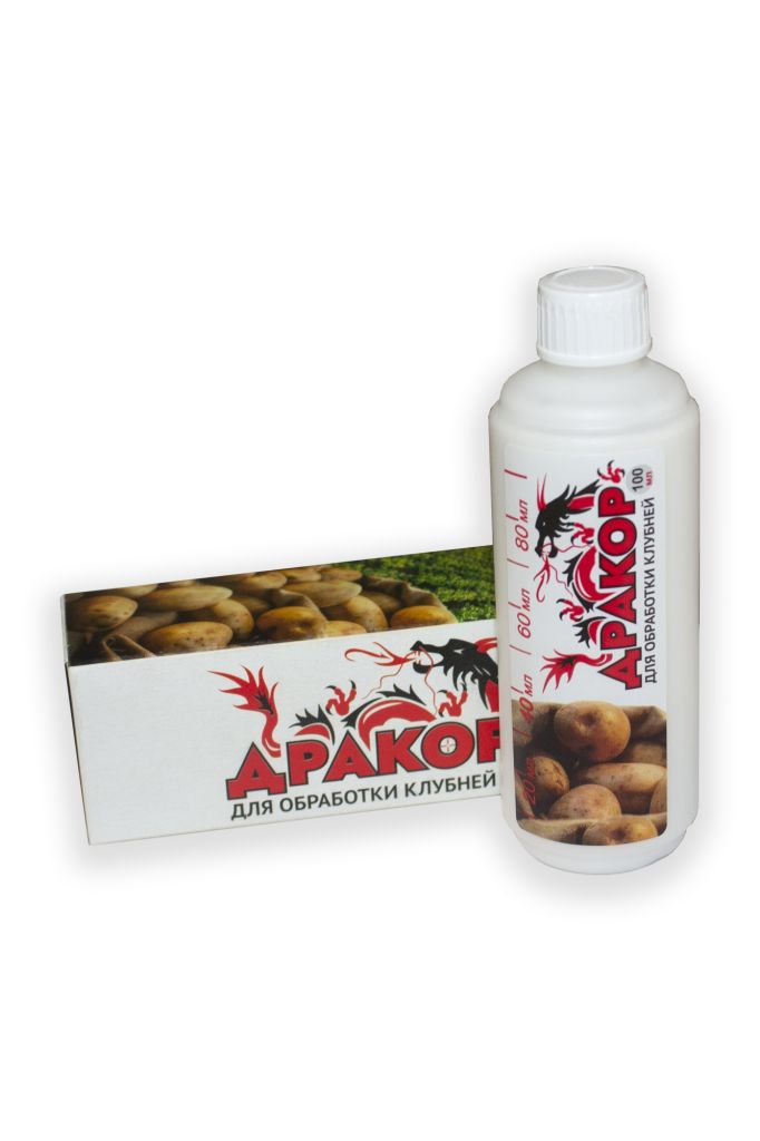 Дракор для обработки клубней - инсектицид для защиты картофеля и цветочных культур от комплекса вредителей в личных подсобных хозяйствах. Мощный препарат для защиты картофеля от проволочника и колорадского жука. Действующее вещество — клотианидин — имеет самую высокую инсектицидную активность в своем химическом классе. Большая часть проволочников погибает уже в первые 2-3 недели после посадки картофеля. Защитный эффект сохраняется до 2 месяцев. Результат — минимум поврежденных клубней при уборке. При применении в течение 3 сезонов подряд можно избавиться от проволочника полностью на несколько следующих лет. Обработка клубней перед посадкой защищает картофель от колорадского жука до 2 месяцев. В средней полосе и более северных районах дополнительных обработок обычно не требуется. В более южных районах — дополнительно не более одной обработки. Исключает повреждение листового аппарата личинками колорадского жука в самый критический период развития растений и наиболее интенсивного фотосинтеза, что обеспечивает значительную прибавку урожая. Снижает численность медведки на картофельном участке. Можно использовать и при опрыскивании по листу.