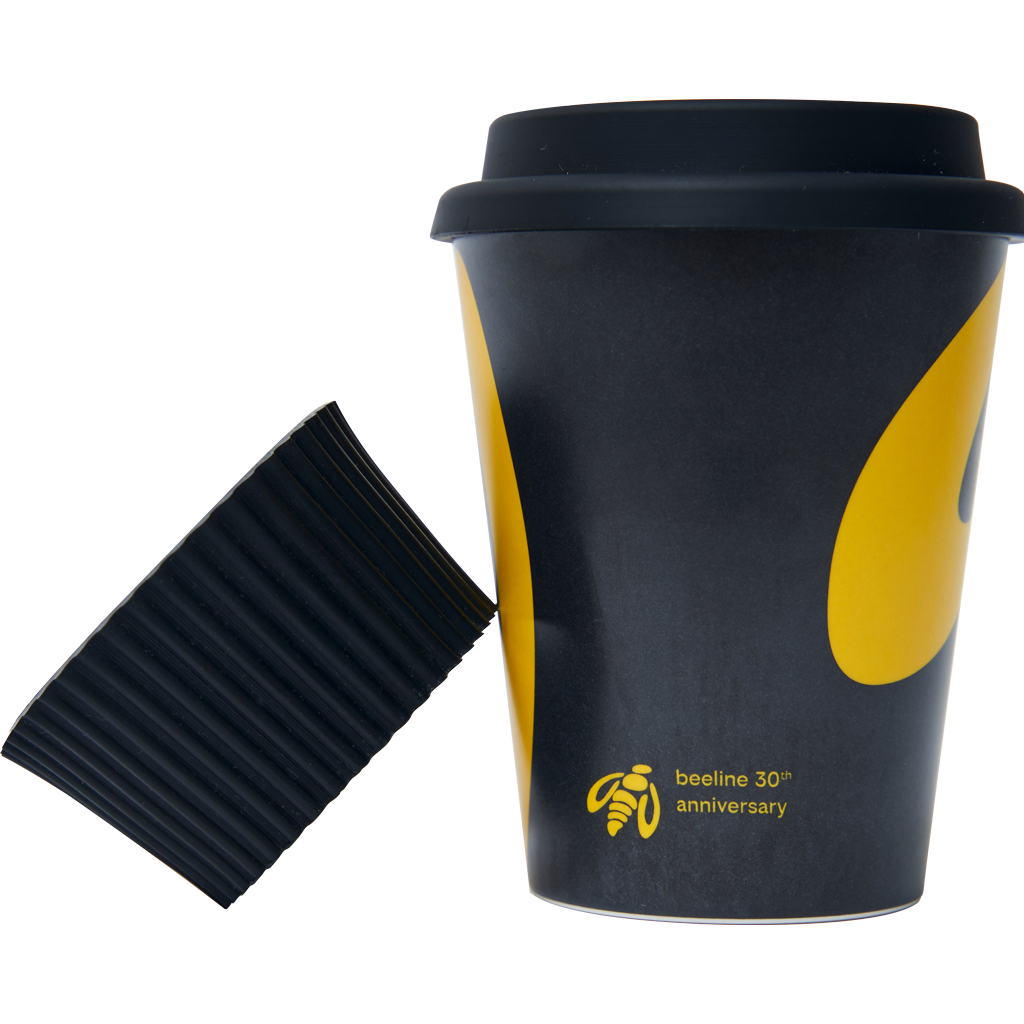 Термостакан для горячих напитков из лимитированной коллекции мерча билайна к 30-летию компании. Крышка не даст твоему кофе остыть во время прогулок, а капхолдер из чёрного матового силикона — обжечься.Объём стакана — 350 мл.