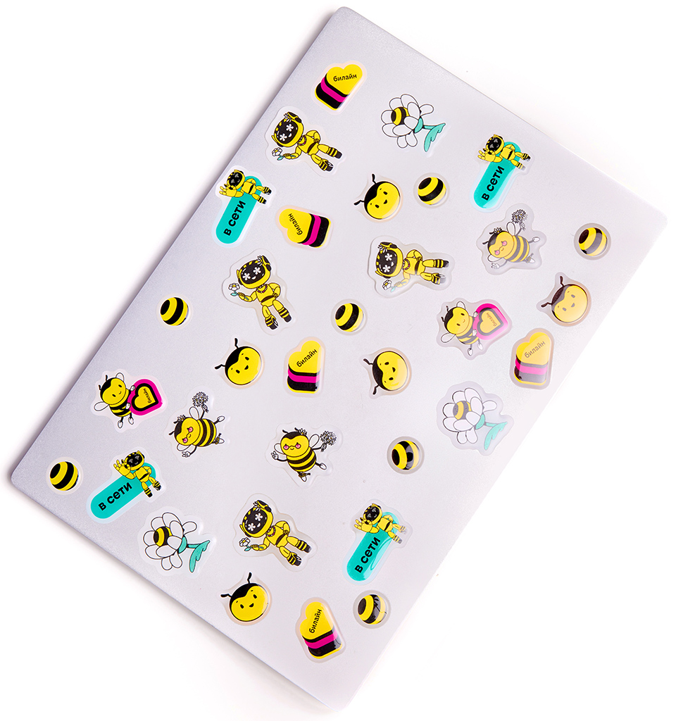 осторожно, эти брендированные стикеры могут оказаться где угодно: на твоём ноутбуке, телефоне, ежедневнике, кардхолдере, а может быть даже на ланчбоксе
