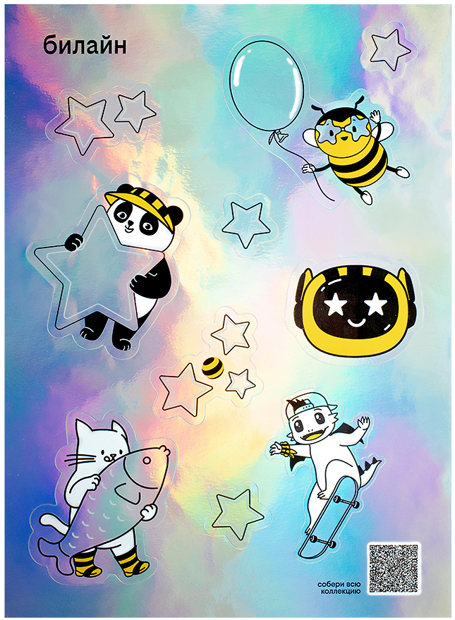 10 голографических листовок-стикеров «Апперы» формата А5 с маскотами билайна идеально подойдут для украшения альбомов, открыток, блокнотов и другого творчества.
