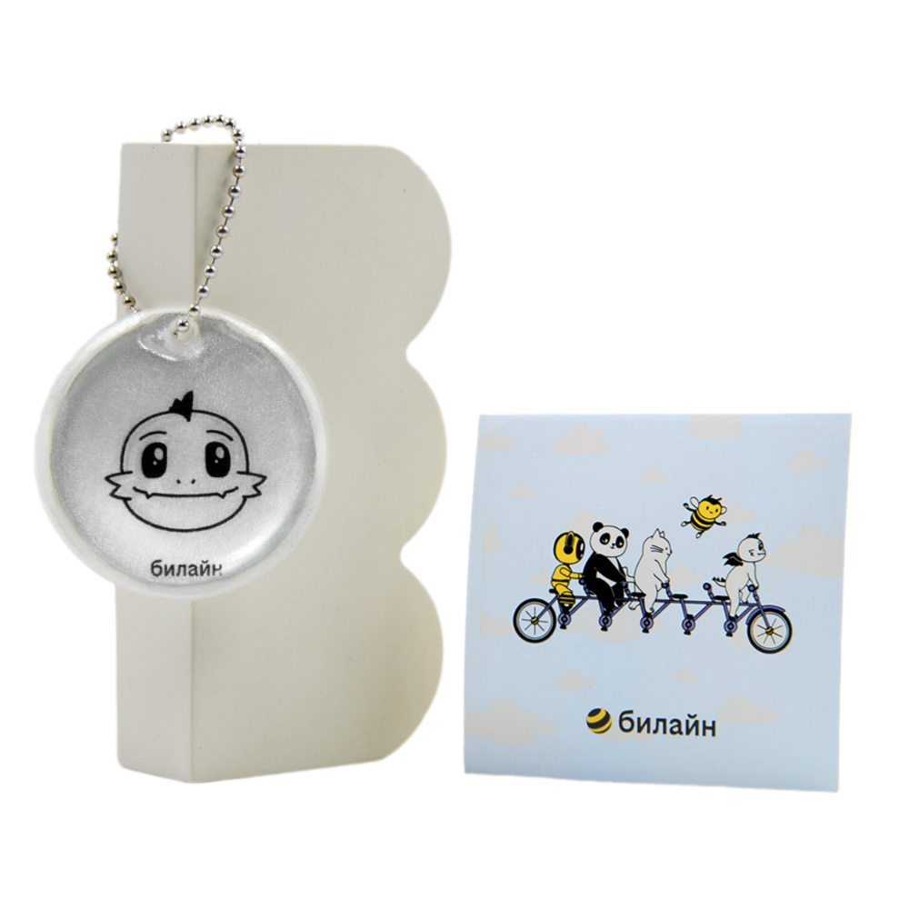 Светоотражающая подвеска-фликер 50×50 мм с принтом «Дракон Юнг» на шариковой 10-сантиметровой цепочке — то, что нужно для безопасности ребёнка в тёмное время суток. Полезный и яркий аксессуар можно повесить ему на рюкзак или куртку — и дракон Юнг сделает его заметным, когда он станет переходить дорогу.А ещё в комплекте найдёте приятный сюрприз: стикер с любимыми героями билайна :)