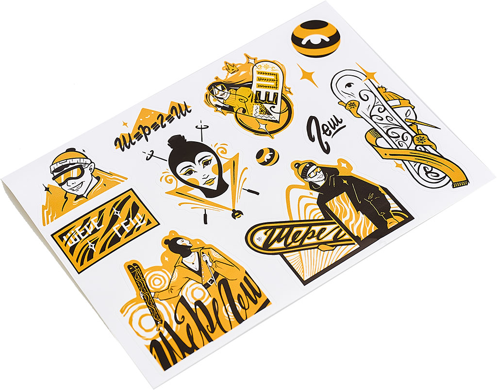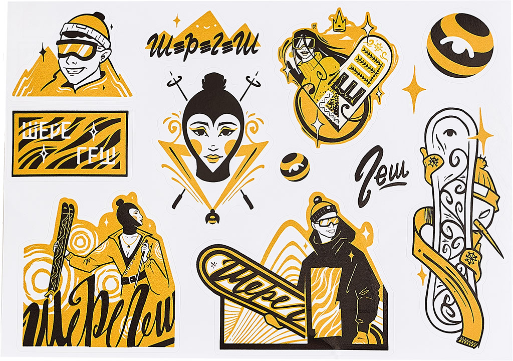 Стикерпак MySiberia — Шерегеш, как он есть: горы, люди, лыжи, сноуборд и самое главное — эмоции. Наклейте вайб туда, где живёт ваш движ: шлем, ноут, чемодан, телефон — любые гладкие поверхности. Формат: лист А5 с 7 квадратными стикерами 35×35 мм.
